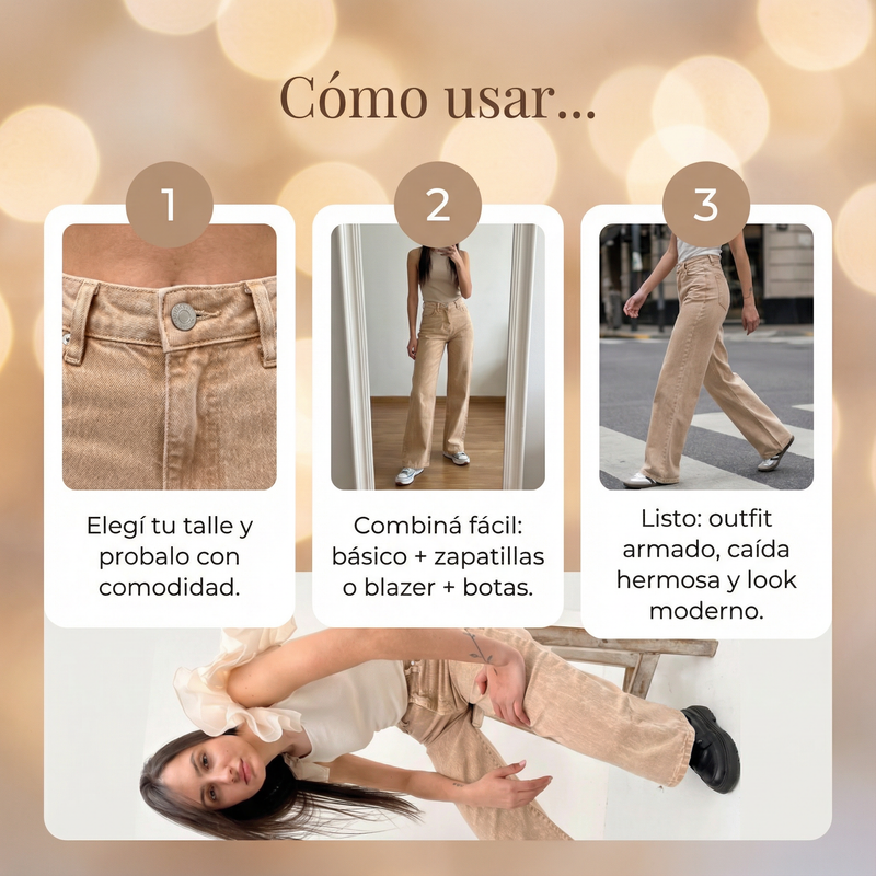 • Calce wide leg que favorece: aporta caída y look moderno.